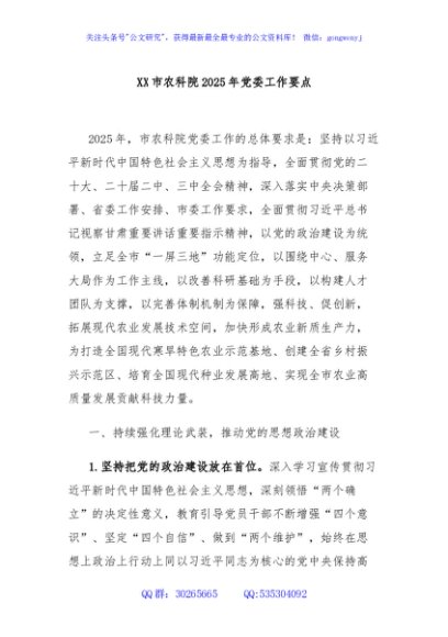/ XX市农科院2025年党委工作要点