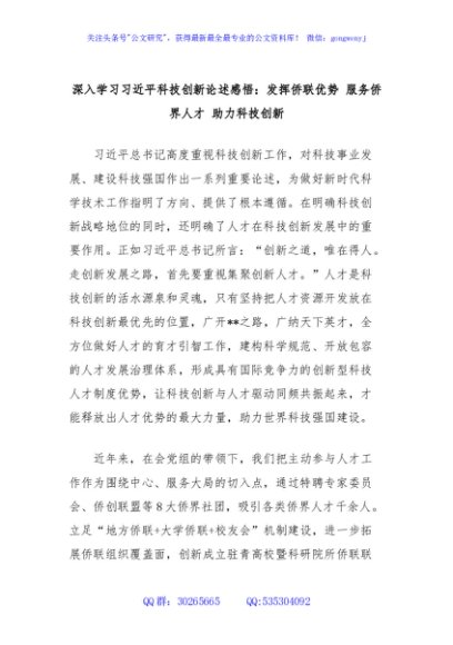 / 深入学习习近平科技创新论述感悟:发挥侨联优势 服务侨界人才 助力科技创新