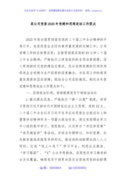 / 某公司党委2025年党建和思想政治工作要点