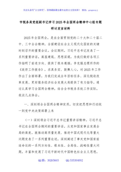 / 市税务局党组副书记学习2025年全国两会精神中心组专题研讨发言材料