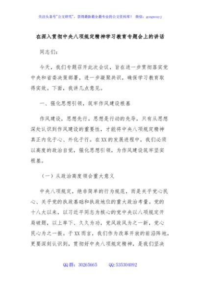 / 在深入贯彻中央八项规定精神学习教育专题会上的讲话