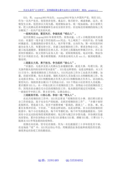 疫情防控先进个人事迹材料