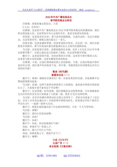 / 2022年春节联欢晚会主持词