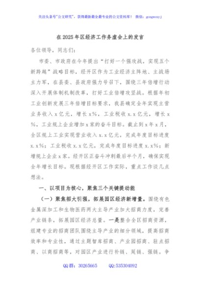/ 在2025年区经济工作务虚会上的发言