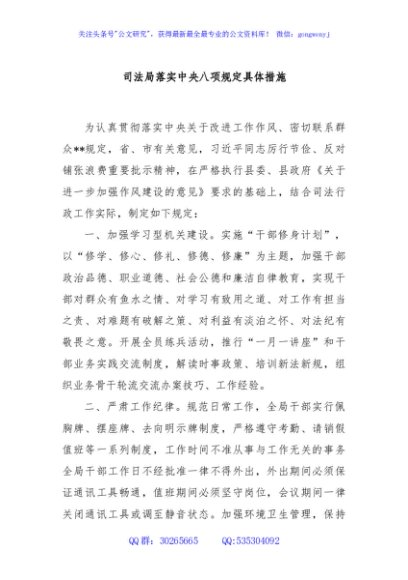 / 司法局落实中央八项规定具体措施