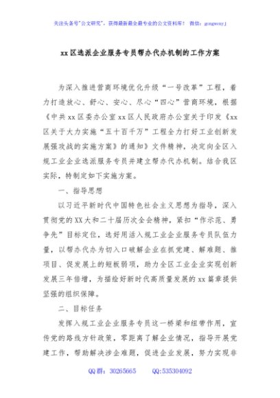 / xx区选派企业服务专员帮办代办机制的工作方案