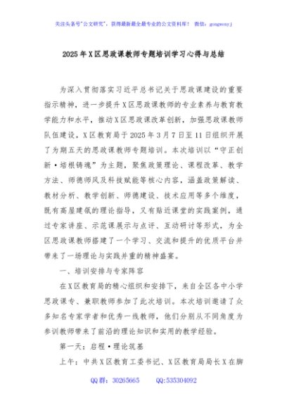 / 2025年X区思政课教师专题培训学习心得与总结