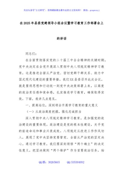 / 在2025年县委党建领导小组会议暨学习教育工作部署会上的讲话