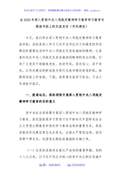 / 在2025年深入贯彻中央八项规定精神学习教育学习教育专题读书班上的交流发言(作风建设)