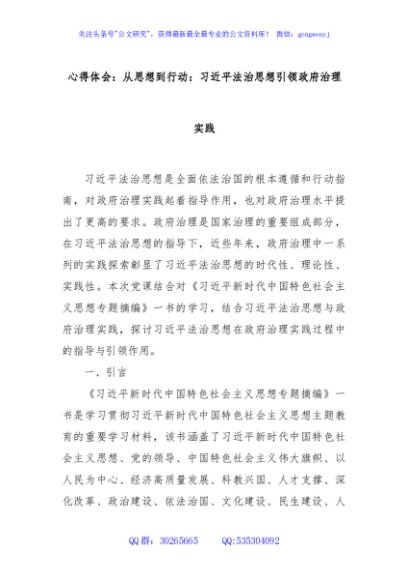 / 心得体会:从思想到行动:习总书记法治思想引领政府治理实践