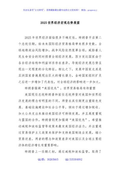 / 2025世界经济宏观态势展望