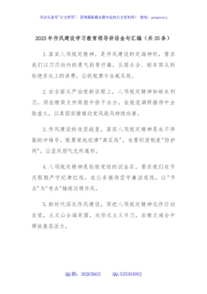 / (35条)2025年作风建设学习教育领导讲话金句汇编
