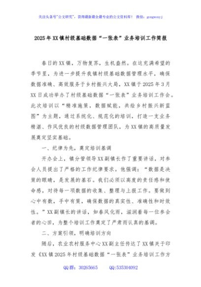 / 2025年XX镇村级基础数据“一张表”业务培训工作简报