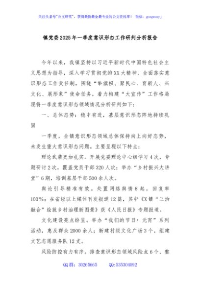 / 镇党委2025年一季度意识形态工作研判分析报告