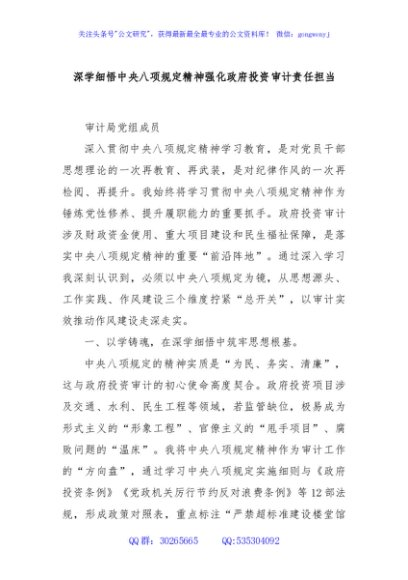 / 深学细悟中央八项规定精神强化政府投资审计责任担当