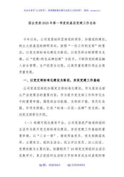 / 国企党委2025年第一季度抓基层党建工作总结