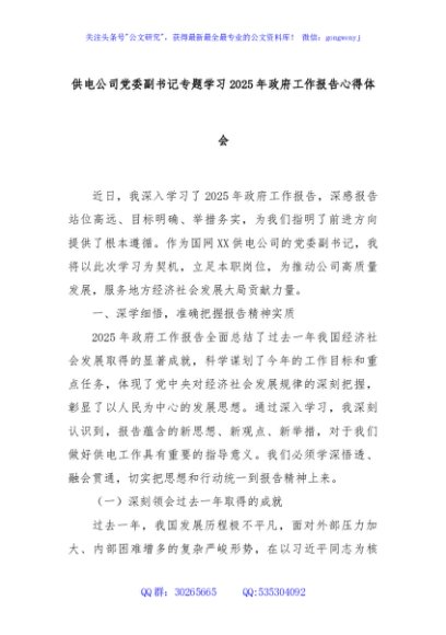 / 供电公司党委副书记专题学习2025年政府工作报告心得体会
