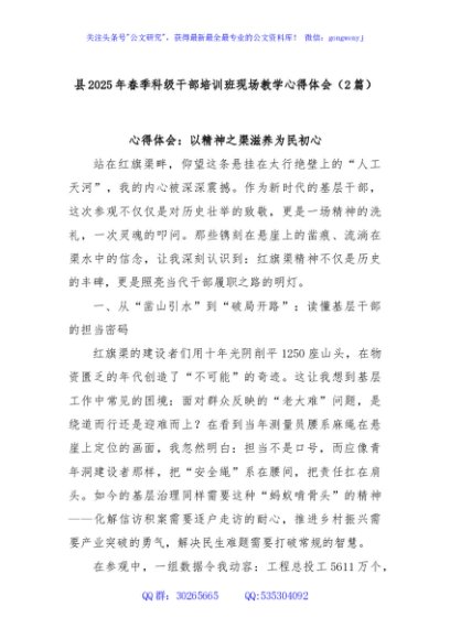 / (2篇)县2025年春季科级干部培训班现场教学心得体会