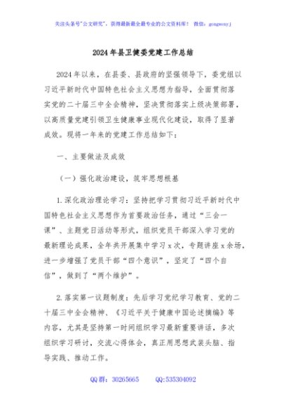 / 2024年县卫健委党建工作总结