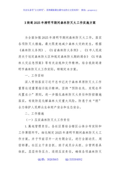 / X街道2025年清明节期间森林防灭火工作实施方案
