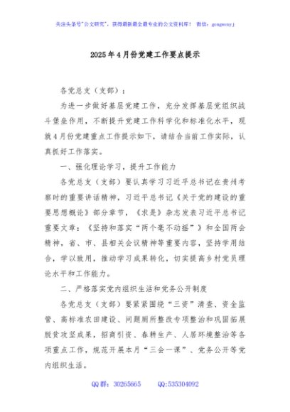 / 2025年4月份党建工作要点提示
