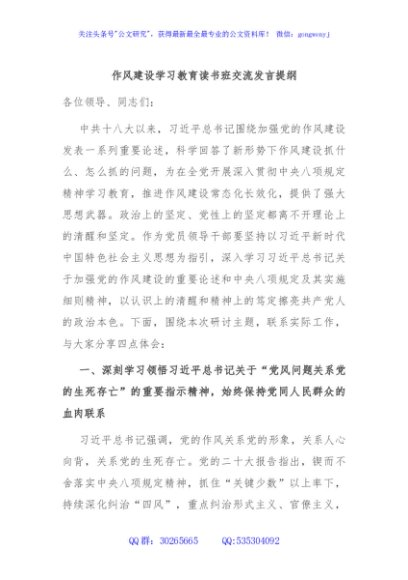 / 作风建设学习教育读书班交流发言提纲