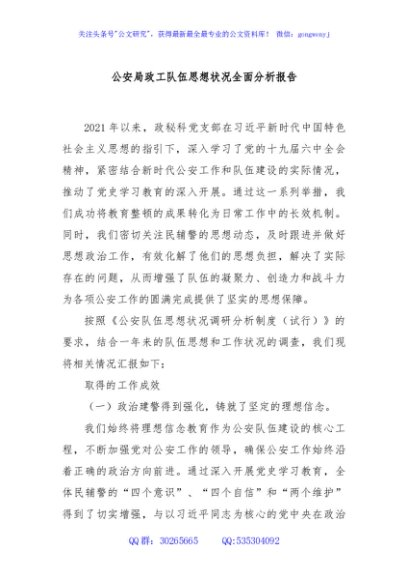 / 公安局政工队伍思想状况全面分析报告