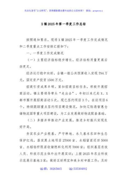 / X镇2025年第一季度工作总结