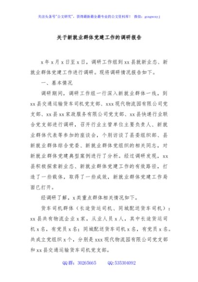 / 关于新就业群体党建工作的调研报告