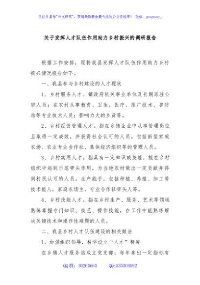/ 关于发挥人才队伍作用助力乡村振兴的调研报告