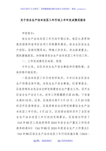 / 关于安全生产治本攻坚三年行动上半年完成情况报告