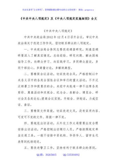 / 《中共中央八项规定》及《中央八项规定实施细则》全文