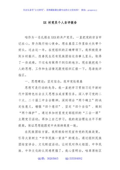 / XX 村党员个人自评报告