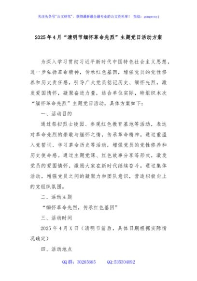 / 2025年4月“清明节缅怀革命先烈”主题党日活动方案