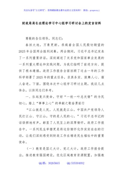 / 财政局局长在理论学习中心组学习研讨会上的发言材料