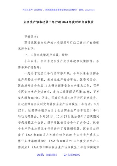 / 安全生产治本攻坚三年行动2024年度对标自查报告