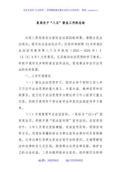 / 某局关于“八五”普法工作的总结