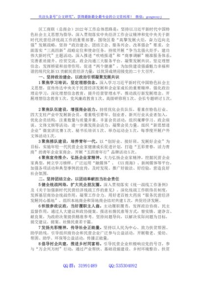 / 区工商业联合会(总商会)2022年工作要点