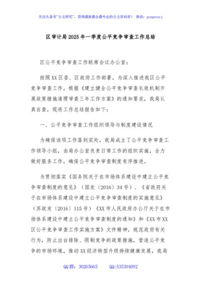 / 区审计局2025年一季度公平竞争审查工作总结