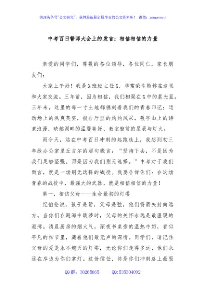 / 中考百日誓师大会上的发言:相信相信的力量