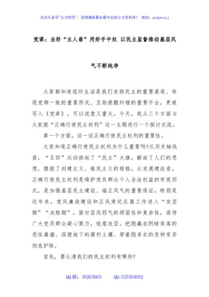 / 党课:当好“主人翁”用好手中权 以民主监督推动基层风气不断纯净
