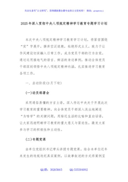 / 2025年深入贯彻中央八项规定精神学习教育专题学习计划