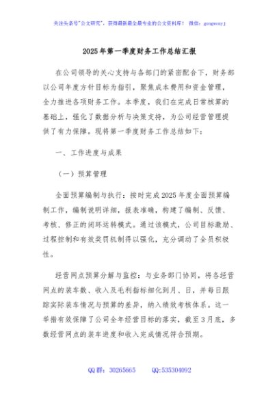/ 2025年第一季度财务工作总结汇报
