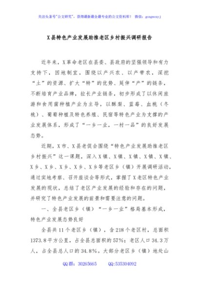 / X县特色产业发展助推老区乡村振兴调研报告