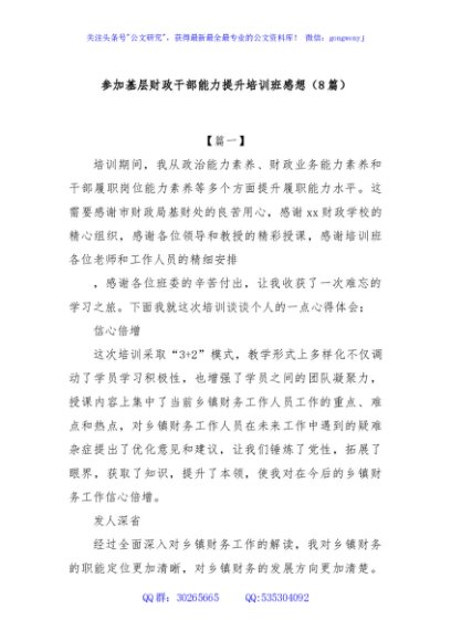 / (8篇)参加基层财政干部能力提升培训班感想