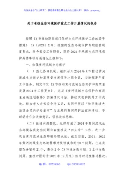 / 关于承担生态环境保护重点工作开展情况的报告