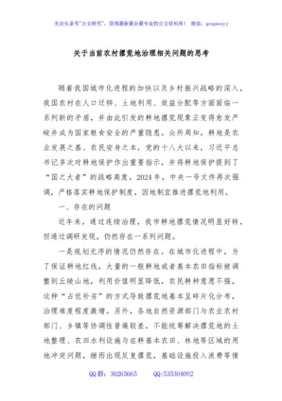 / 关于当前农村撂荒地治理相关问题的思考