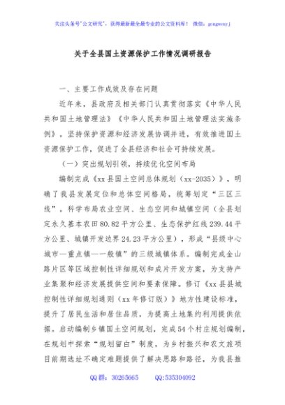 / 关于全县国土资源保护工作情况调研报告