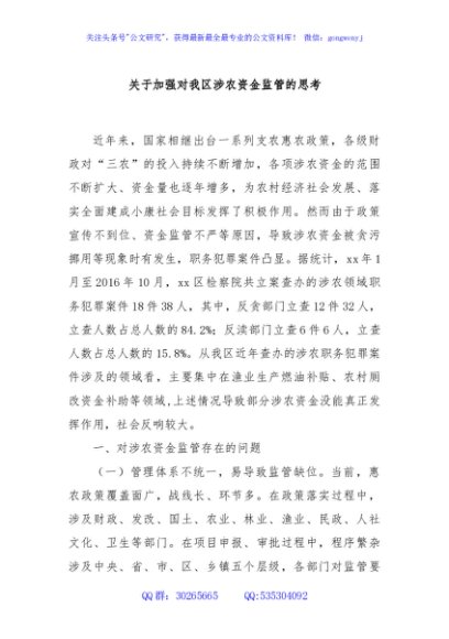 / 关于加强对我区涉农资金监管的思考