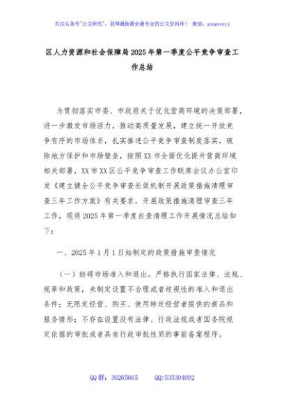 / 区人力资源和社会保障局2025年第一季度公平竞争审查工作总结